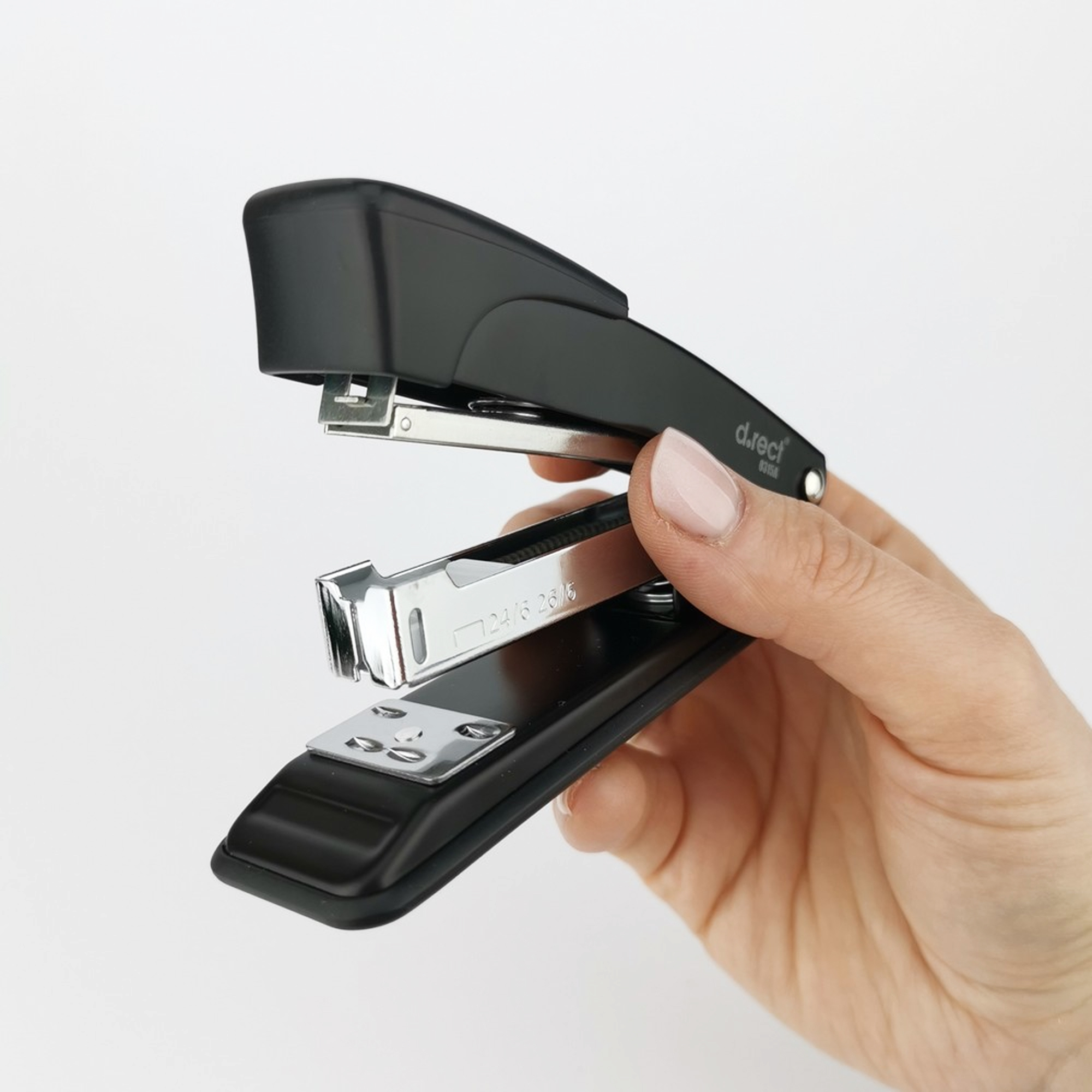 Výkonná plastová zošívačka za priaznivú cenu. Mechanika vyrobená z kovových častí. Na spodnej časti zošívačky sú zabudované protišmykové gumené nožičky, ktoré chránia váš nábytok pred poškodením. Zošívací výkon až 25 listov, hĺbka vkladania 50 mm. Používa spinky 24/6 a 26/6.