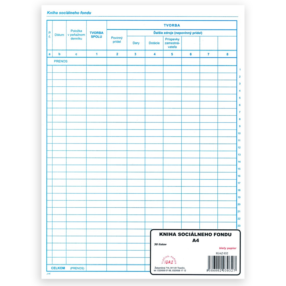 Varianty produktu 032 Kniha socialneho fondu A4-30 list.