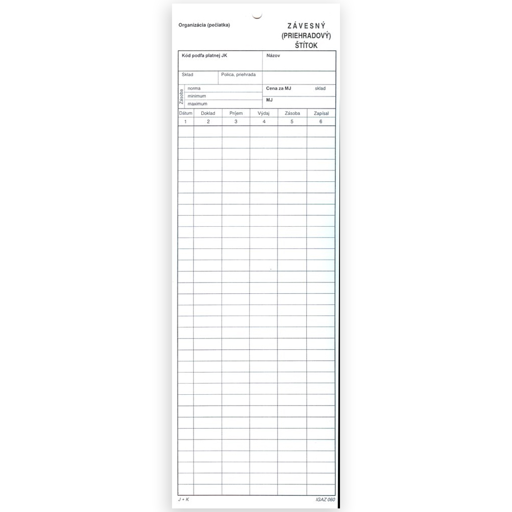 Štítok sa používa na evidenciu príjem a výdaj tovaru v skladových priestoroch. Sfarbenie kartón biely, čierne riadky.…