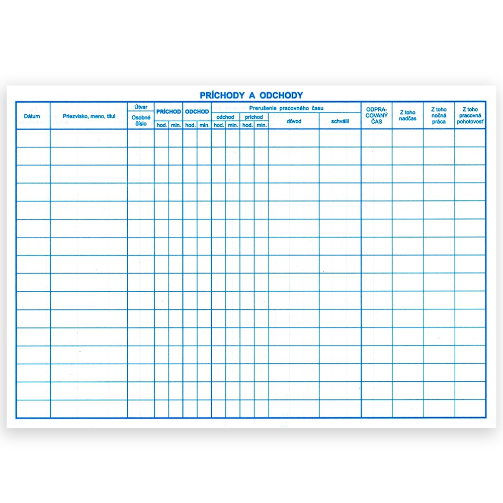 Kniha sa používa na evidenciu dochádzky príchody a odchody. Obsahuje 30 listov, sfarbenie papiera biely, čierne riadky.…
