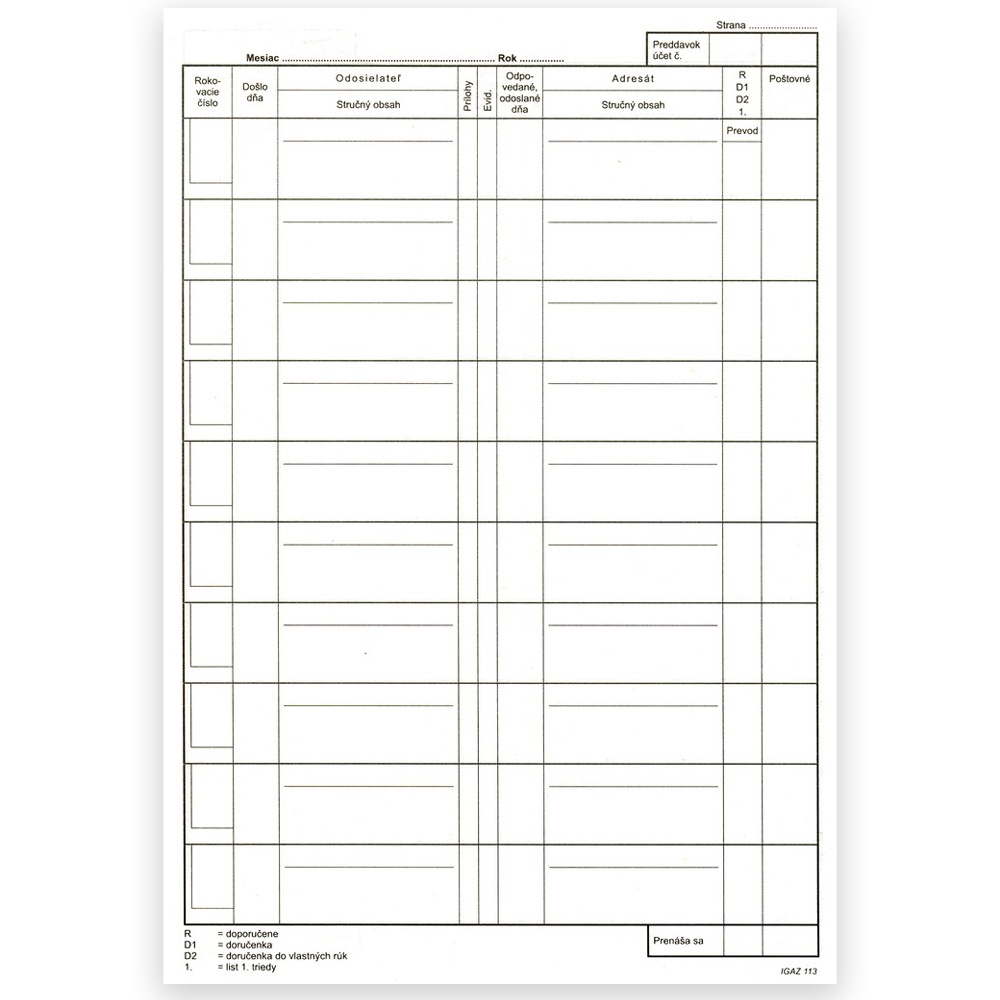 Varianty produktu 113 Kniha došlej - odoslanej pošty