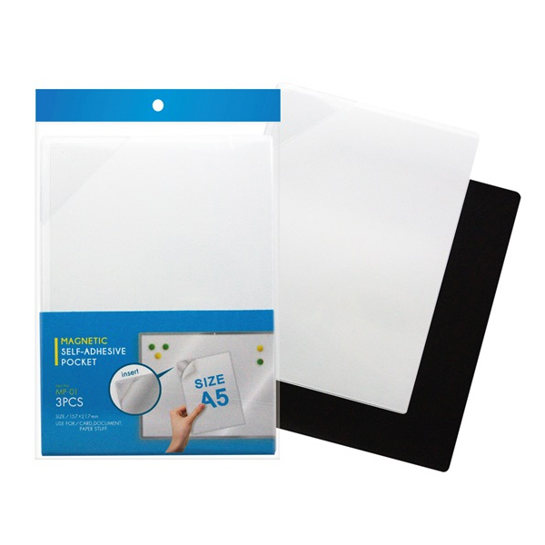 Ideálne riešenie pre umiestnenie návodov, bezpečnostných pokynov, označovanie skladových regálov v logistických parkoch , atď. Upevnenie informácii do formátu A5 na kovové plochy. Vkladané materiály chráni pred znečistením a poškodením. Jednoduchá výmena vkladaných materiálov. V ponuke formáty A5 a A4 Cena je uvedená za balenie 3ks