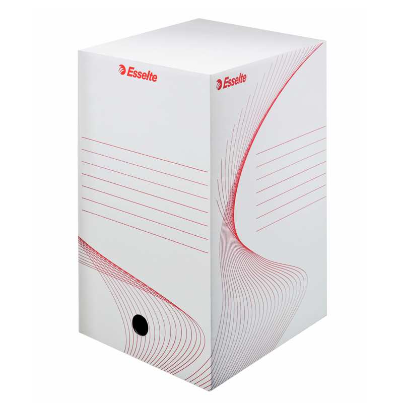 Ideálne na archiváciu dokumentov prenesených zo zakladačov šírky 75 a 80 mm. Široké otváranie umožňuje jednoduchší prístup k obsahu škatule a ich vkladanie je oveľa jednoduchšie. Jednoduchá skladanie, zrozumiteľné pokyny vytlačené na škatuli. Ideálna veľkosť na archiváciu v regáloch, Box je možné umiestniť vertikálne alebo horizontálne. Rozmery 330x80x260mm. Vysokú kvalitu boxov Esselte Standard oceňujú naši zákazníci viac ako 25 rokov. Tony dokumentov sú každoročne zabalené do škatúľ Esselte Standard na pracoviskách vo všetkých sektoroch.