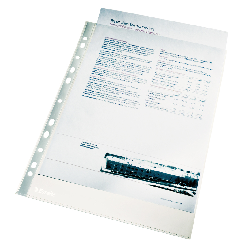Závesné prospektové obaly Esselte A4 s bočnou chlopňou na pravej strane obalu. Ľahký prístup k dokumentom s dlhou otvorenou pravou stranou ktorá je zároveň plne chránená s chlopňou. Multiperforácia na ukladanie do krúžkových a pákových zakladačov. Embosovaný matný povrch, hrúbka 100mic. Balenie sáčok 10ks. Formát A4