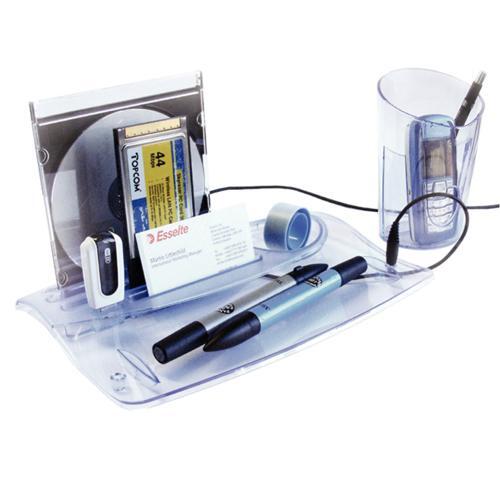 Praktický stolný organizér jedinečného dizajnu radu Leitz Allura. Ideálny na prehľadné a bezpečné odkladanie, pamäťových kariet, pier, vizitiek, bločkov, kancelárskych spiniek, a iných drobných kancelárskych potrieb. Dodávaný vrátane stojanu na perá. Možnosť odloženia okuliarov a mobilných telefónov. Organizér možno umiestniť na odkladač Leitz Allura.