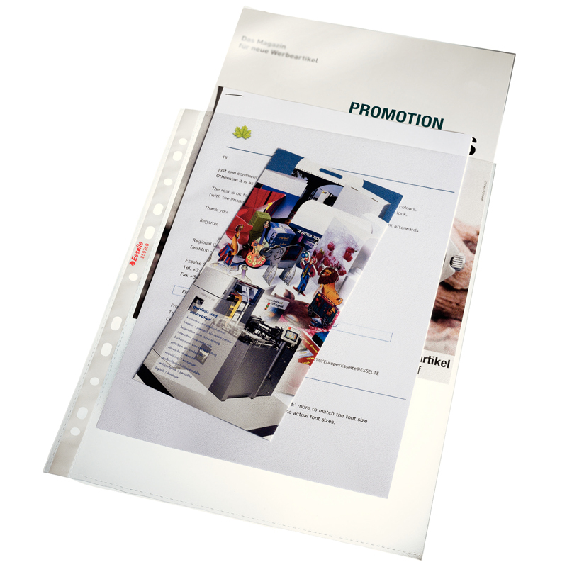 Závesné prospektové obaly Esselte A4 s bočnou chlopňou na pravej strane obalu. Ľahký prístup k dokumentom s dlhou otvorenou pravou stranou ktorá je zároveň plne chránená s chlopňou. Multiperforácia na ukladanie do krúžkových a pákových zakladačov. Embosovaný matný povrch, hrúbka 100mic. Balenie sáčok 10ks. Formát A4