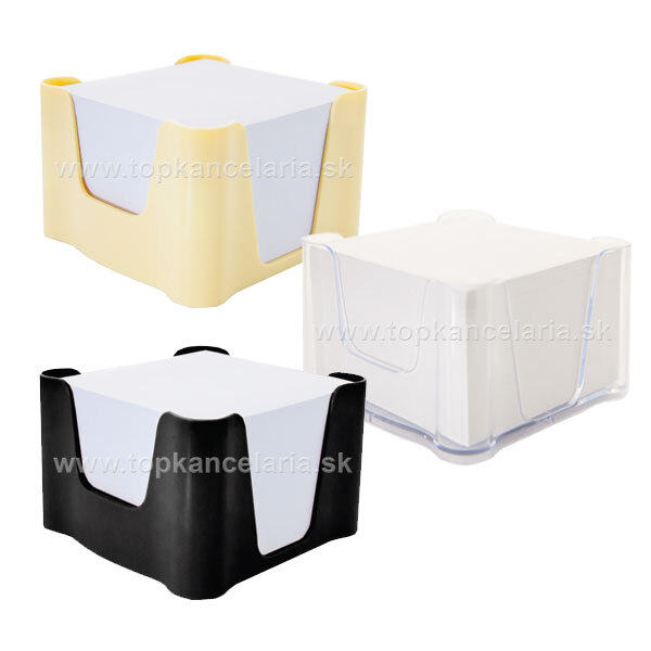 Nelepené poznámkové bloky v tvare kocky dodávané v plastových krabičkách oblých tvarov. Väčšie balenie 48 ks.