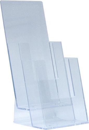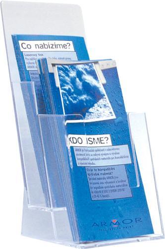 Jednoliaty stojanček vyrobený z číreho plastu pre buletiny a propagačné materiály pre formát 1/3 z A4.