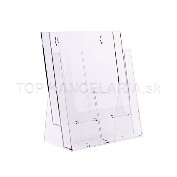 Jednoliate stojančeky vyrobené z číreho plastu pre buletiny a propagačné materiály pre formáty do A4. Možnosť použitia ako pultový, alebo závesný.Priečinky: 2 x A4 (210x297 mm)