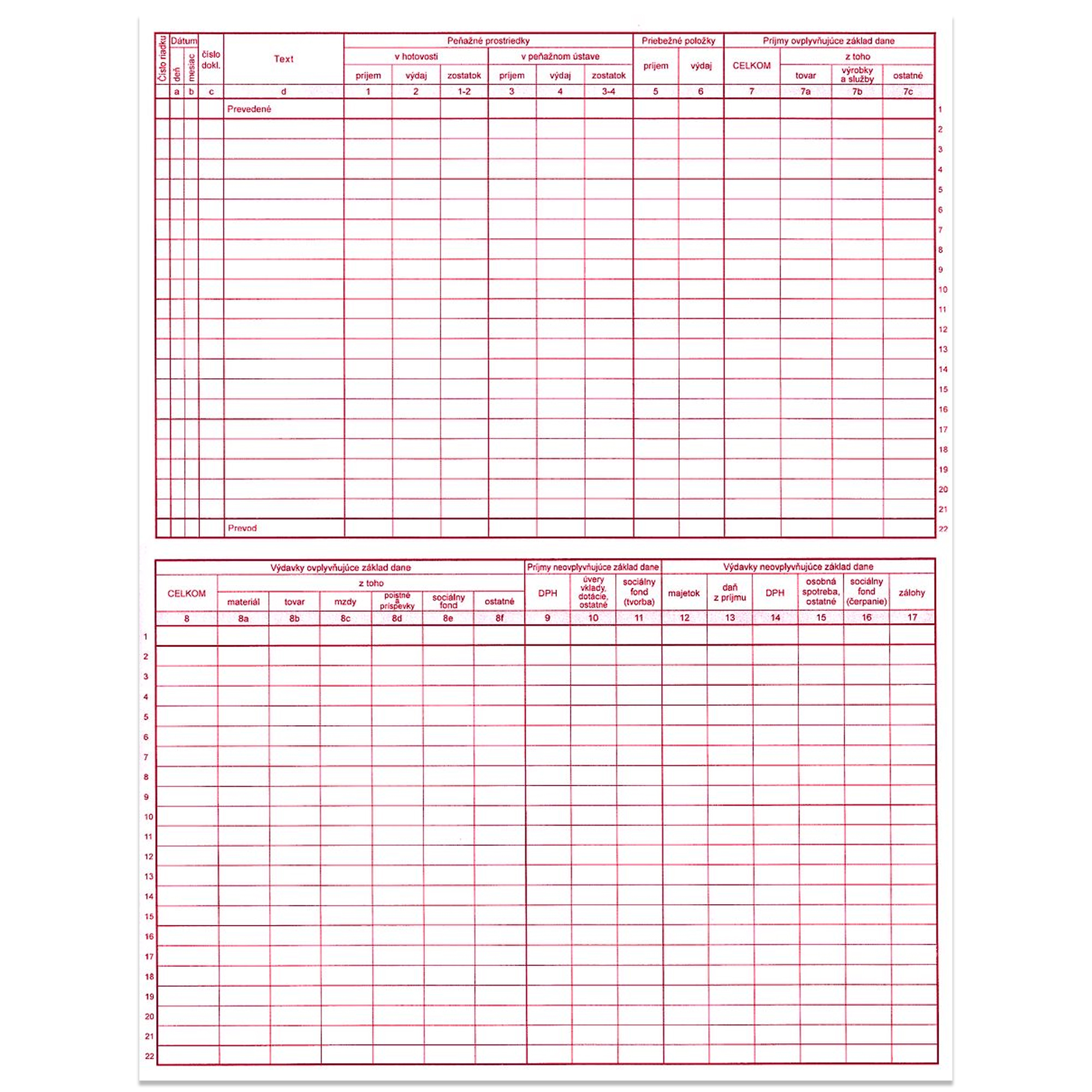 Denník sa používa na evidenciu príjem, výdaj , zostatok peňažnej hotovosti a dalšie dvôležité údaje. Obsahuje 20 listov formátu A4 - zošit. Sfarbenie papiera biely, červené riadky. Rozmery: 21 x 30 cm.