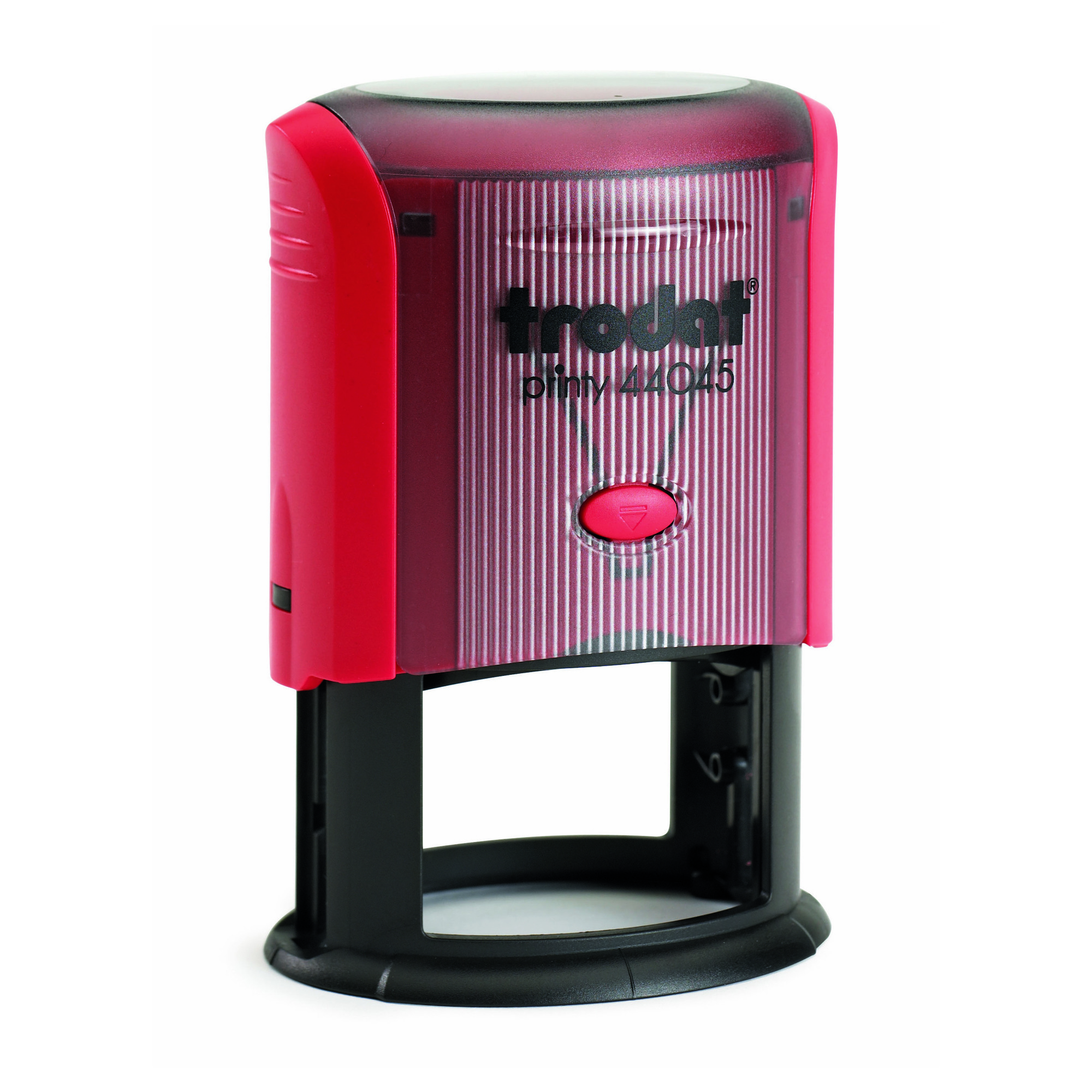 Plastová samofarbiaca pečiatka. - Veľkosť odtlačku: až D= 45 mm - Možné farby odtlačku: čierna, modrá, červená, zelená a fialová - Náhradná poduška: 6/4645 - Balenie: 10 ks - Farba: Červená