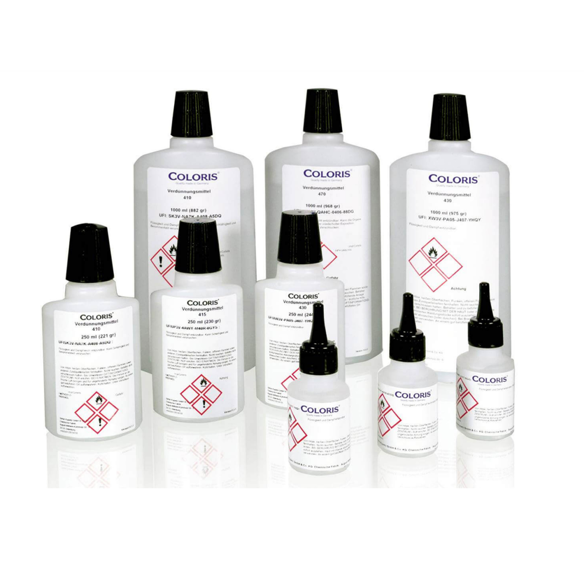 Riedidlo pre špeciálne pečiatkové farby na alkoholovej báze (Berolin...).Pečiatkové vankúšiky so zaschnutým/vysoko viskóznym atramentom možno niekedy osviežiť pridaním malého množstva riedidla.