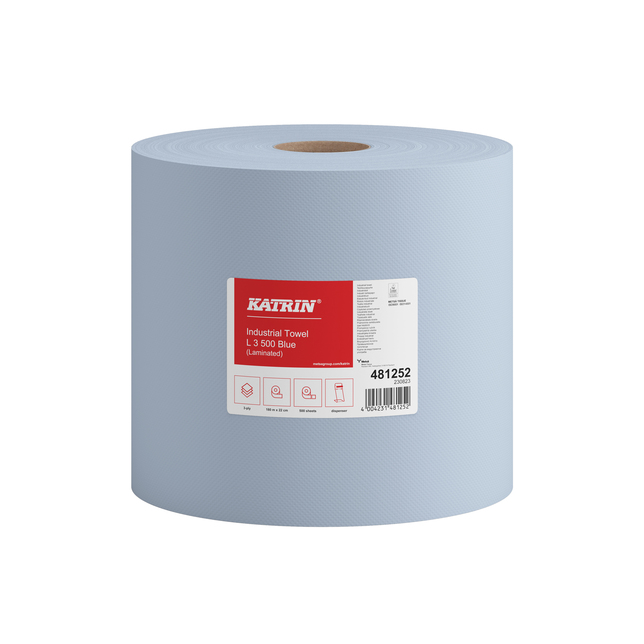 Recyklovaný priemyselný papier na utieranie je laminovaný pre ešte vyššiu pevnosť. Silná trojvrstvová štruktúra poskytuje ochranu pri utieraní nerovných a ostrých povrchov. Výnimočne vhodný pri manipulácii s potravinami, keďže modrá farba zanechá dobre viditeľné stopy prípadných zvyškov papiera. Schválený na priamy kontakt s potravinami. Dodávané v rolkách s priemerom 34cm a šírkou 22cm. V kotúči je 500 útržkov, dĺžka návinu 190m. Farba modrá. Vhodné pre nástenné 60950 a 709158. Pre podlahové stojany 60952 a 709141. Cena je uvedená za 1 kotúč.