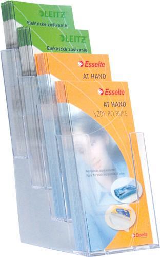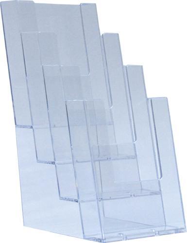 Jednoliaty stojanček vyrobený z číreho plastu pre buletiny a propagačné materiály pre formát 1/3 z A4.