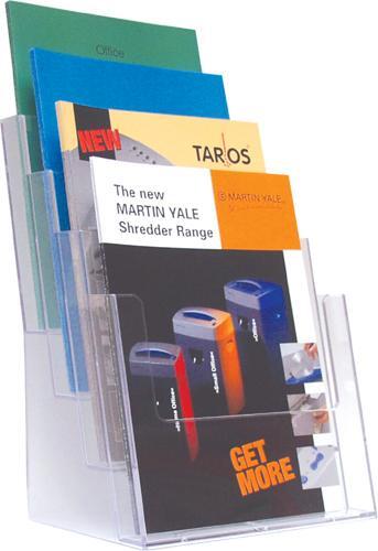 Jednoliate stojančeky vyrobené z číreho plastu pre buletiny a propagačné materiály pre formáty do A4.