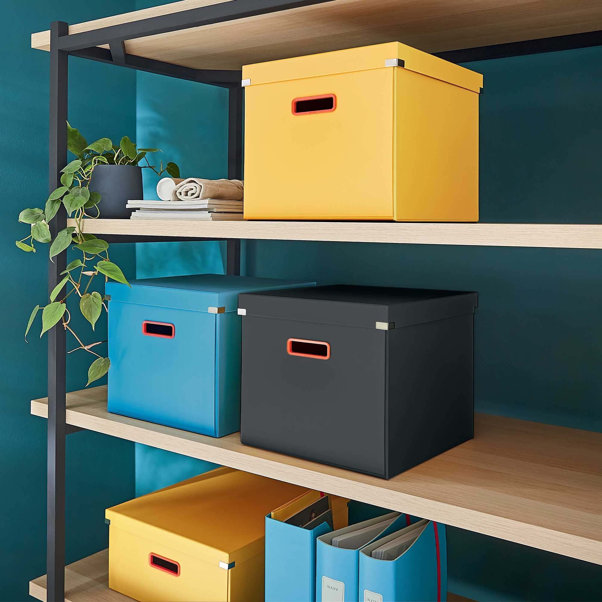 Atraktívna skladacia škatuľa Click & Store COSY univerzálnej veľkosti s vekom vhodná na ukladanie dokumentov, albumov, zakladačov a pod. až do veľkosti A4. Rýchle a jednoduché skladanie/rozkladanie pomocou patentov. Rozloženú škatuľu je možné umiestniť do veka a šetriť tak miesto. Má štýlové červené otvory na pohodlné uchopenie pri zdvíhaní a prenášaní. Prémiová kartónová škatuľa Leitz Cosy Click & Store je ideálna na udržiavanie poriadku doma i v kancelárii a pomáha vám rýchlo a jednoducho si zorganizovať prácu. Vďaka minimalistickému dizajnu a príjemným matným farbám môžete svojmu pracovnému priestoru pridať štýl a farbu. Kolekcia Leitz Cosy kombinuje komfort domáceho pohodlia s prvotriednou kvalitou a vytvára tak pozitívne a produktívne pracovné prostredie. Vyrobené z pevného vysokokvalitného kartónu pre dlhú životnosť, čistá, polomatná PP povrchová úprava. Váha 0,9 kg. Rozmery 281 x 200 x 370 mm.