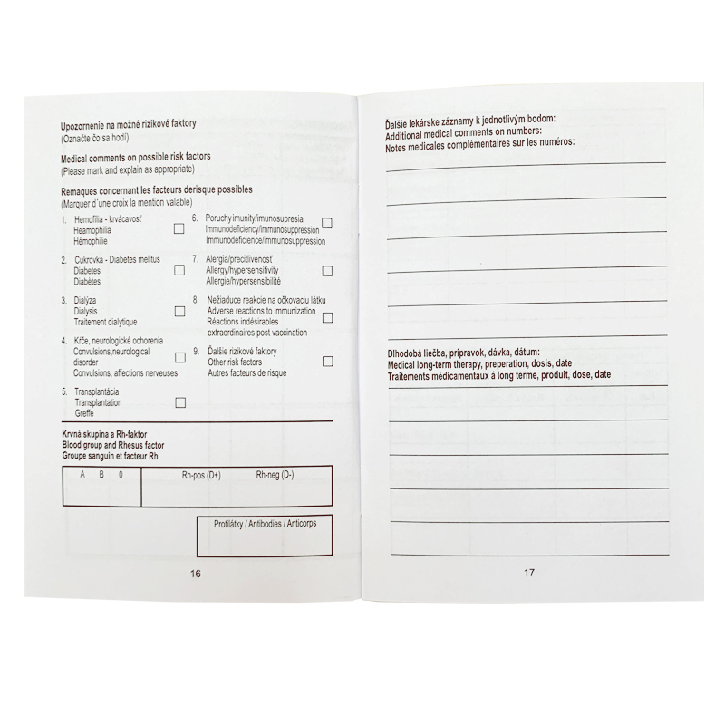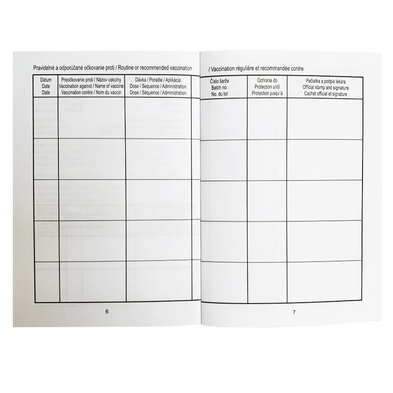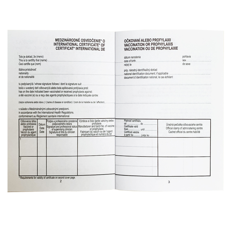 Varianty produktu 619 Medzinárodný očkovací preukaz