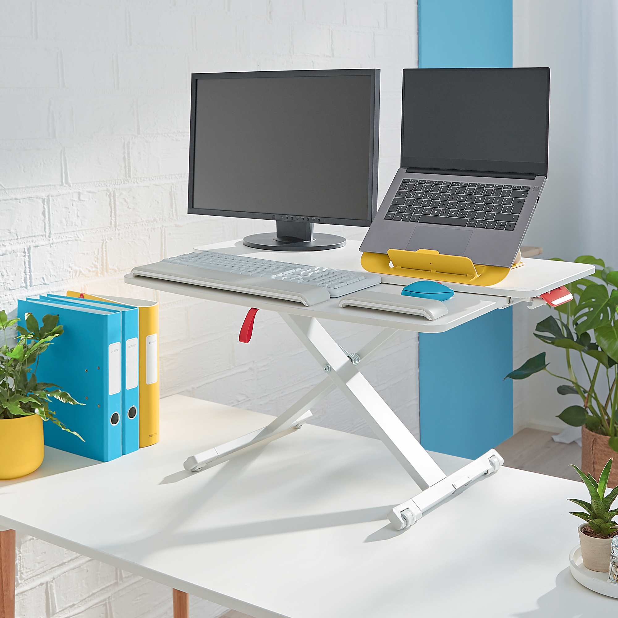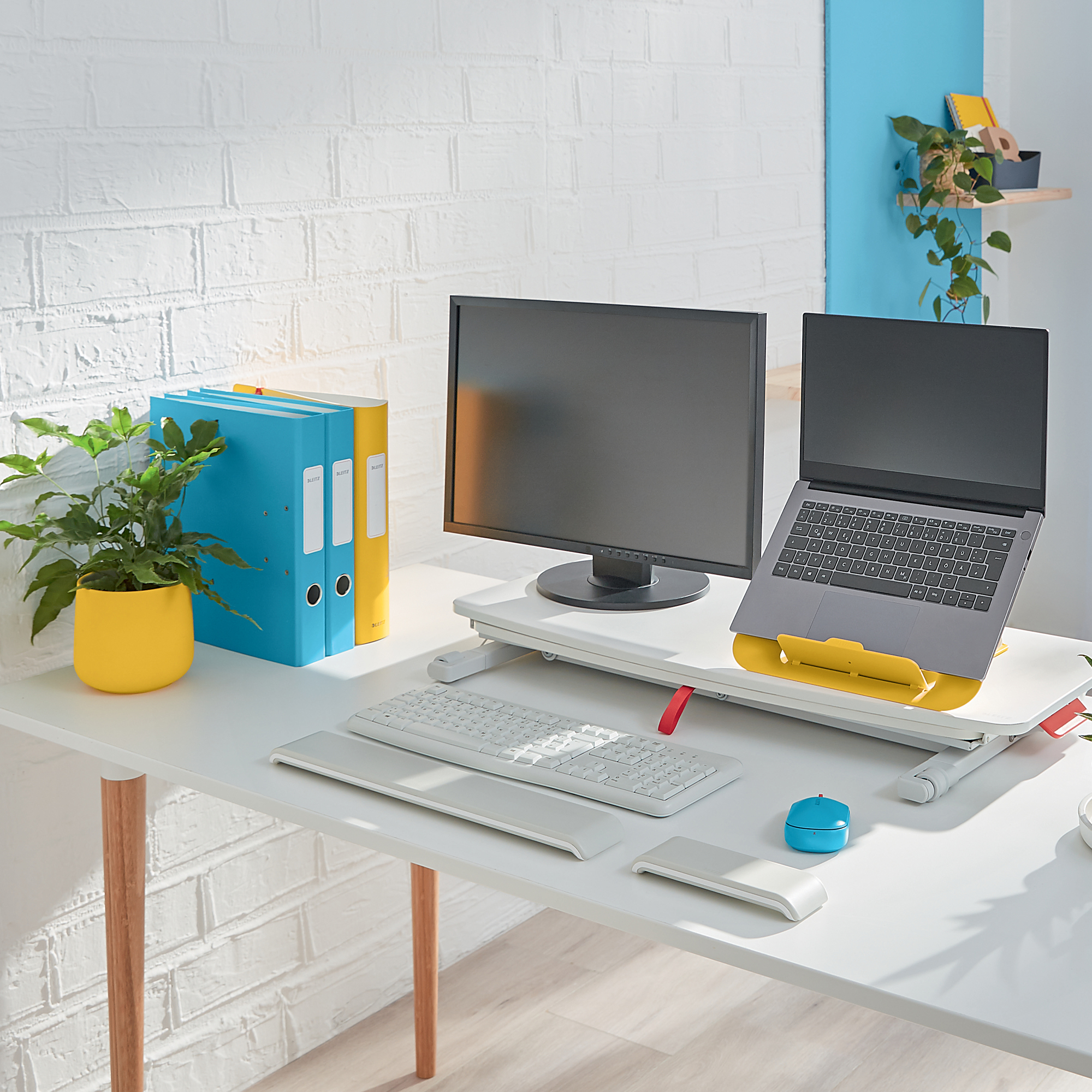 Doplnok pracovného stola pre prácu v sede alebo v stoji. Výsuvná doska pod klávesnicu a myš vám umožňuje flexibilne meniť polohu pri práci. Striedanie sedenia a státia podporuje prirodzený pohyb svalov a minimalizuje negatívne účinky sedenia na Vaše zdravie.