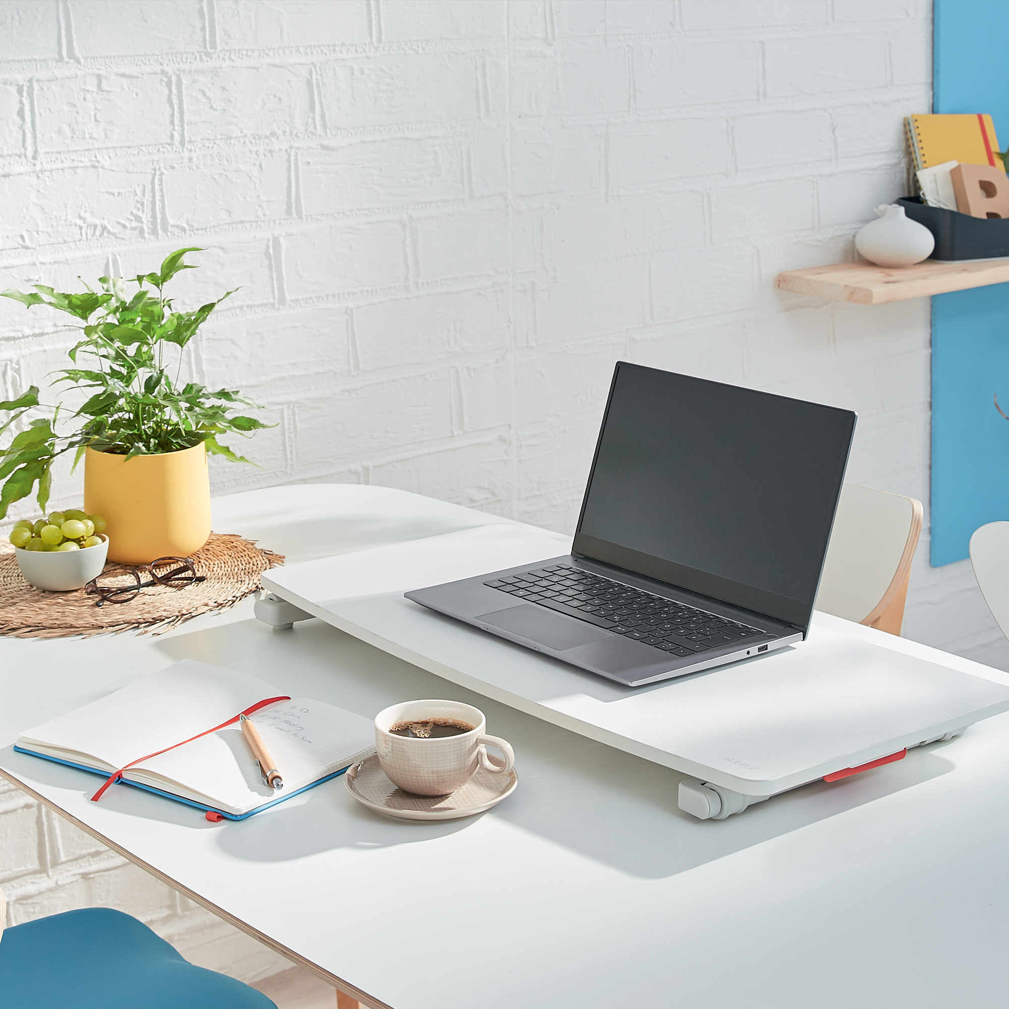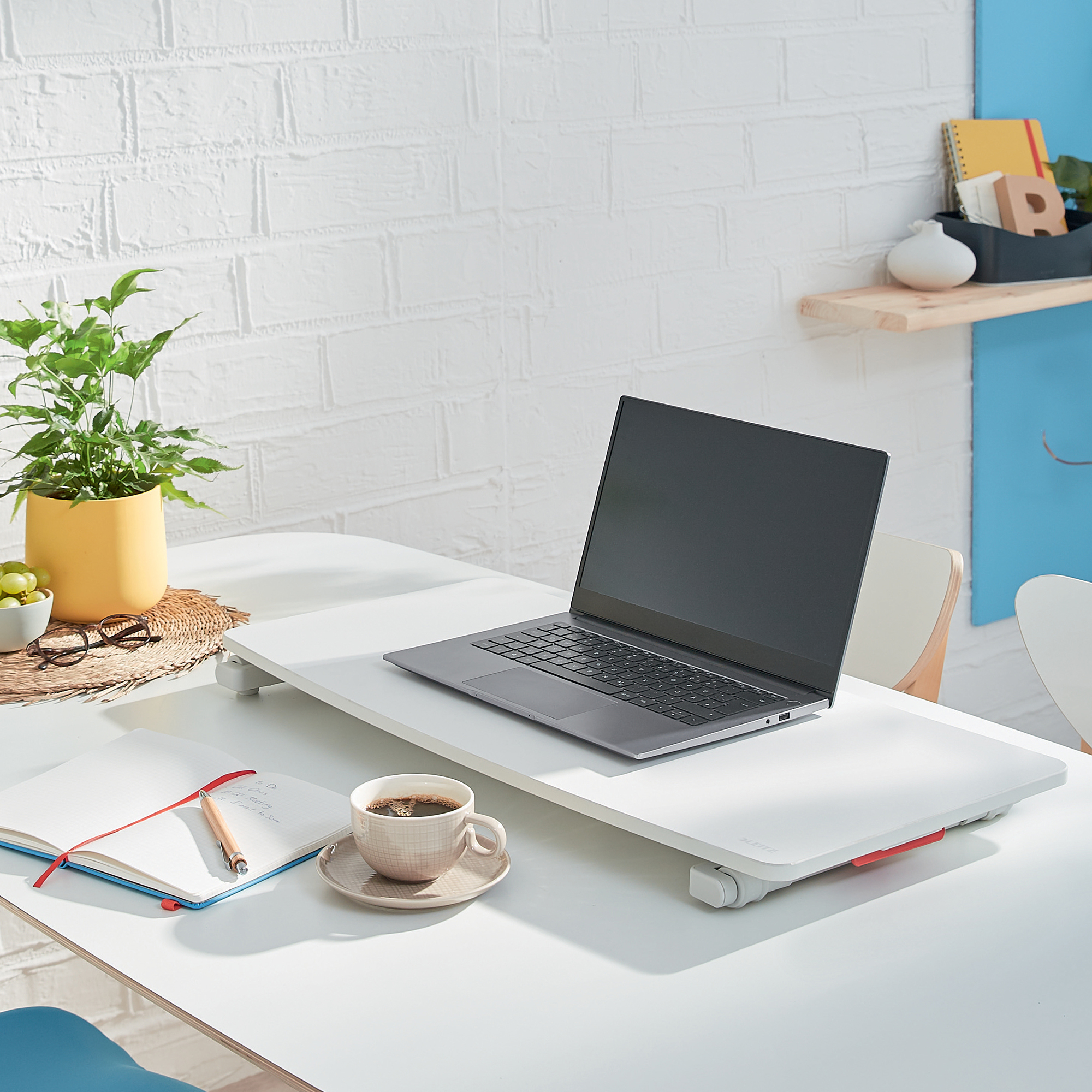 Pracovná stolná doska pre prácu v sede alebo v stoji. Umožňuje flexibilne meniť pracovnú polohu medzi sedením a státím. Vďaka malým rozmerom je ľahko prenosná, umožňuje vytvoriť ergonomicky vhodné pracovisko prakticky kdekoľvek. Podporuje pohyb svalov, zlepšuje držanie tela a zvyšuje hladinu energie. Pneumaticky asistované nastavenie bez námahy zdvihne dosku stola do požadovanej výšky. Tento štýlový pracovný „stôl na stole“ s minimalistickým a moderným dizajnom zlepší vaše zdravie a pohodu. Pomôže vytvoriť ideálne aktívne pracovné prostredie práve pre vás. V kombinácii s ostatnými výrobkami Leitz Ergo získate príjemný a flexibilný pracovný priestor, ktorý vás udrží v pohybe a pohode po celý deň.