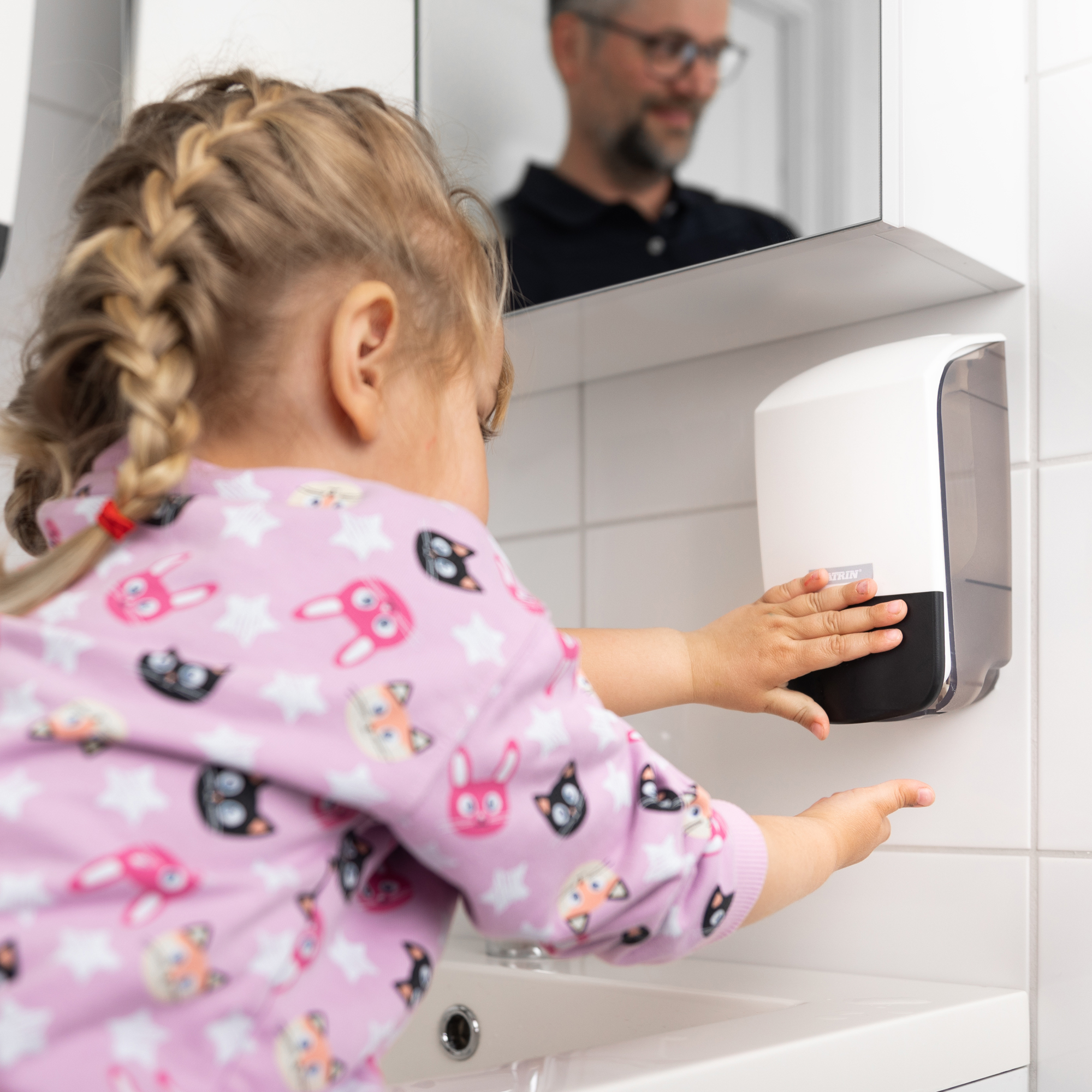 Univerzálny dávkovač s objemom 500 ml., ktorý je možné použiť na tekuté mydlo, penové mydlo, tekuté dezinfekčné mydlo, sprchový gél a dezinfekčný prostriedok záchodového sedadla. Dávkovač je uzamykateľný pričom zámok je možné používať s kľúčom alebo bez kľúča. Vďaka novému systému mydlových zásobníkov výmena náplní je veľmi jednoduchá. Zatlačenie spodného krytu dávkovača, umožní každému bezproblémové použitie. Pre zrakovo postihnutých sú k dispozícii pokyny písané slepeckým písmom. Dávkovač je dodávaný Dávkovač bez náplne...náplň treba dokúpiť Náplň tekuté mydlo 500 ml.....86542 Náplň penové mydlo 500 ml.....37780