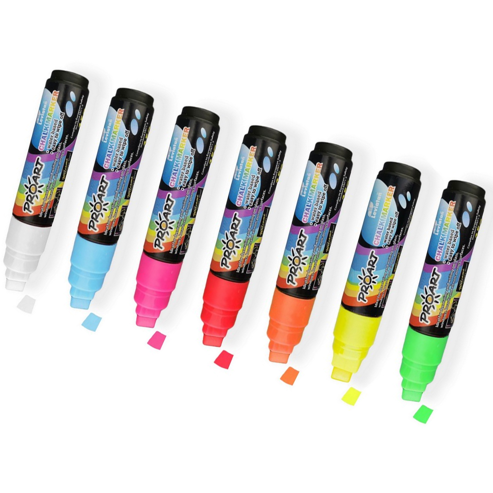 Táto sada kvalitných 28-gramových kriedových popisovačov je určená na písanie na čierne tabule, sklo a ďalšie hladké povrchy. Sú ideálne na vytváranie pútavých propagačných akcií a oznámení v rôznych obchodoch a podnikoch. Používajú sa napríklad v krčmách a reštauráciách na písanie jedálnych lístkov, v obchodoch na informovanie o akciách a v predajniach áut na označenie informácií na oknách áut na predaj.