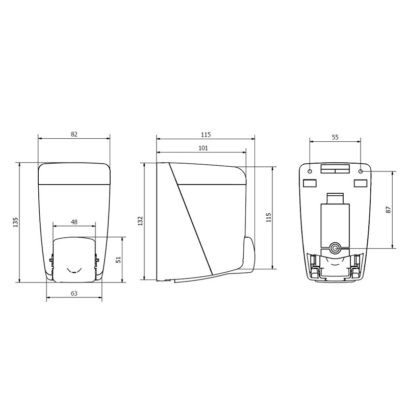 Univerzálny dávkovač tekutého mydla s 0,9l nádržou na dolievanie. Priehladné okienko na vizuálnu kontrolu obsahu mydla. Vhodný do frekventovaných prevádzok. Maximálny výkon a životnosť. Je vyrobený z odolného ABS plastu. Ľahké a rýchle doplnenie tekutého mydla. Stačí zasunúť univerzálny plastový kľúč (kľúč je rovnaký pre všetky modely), odstrániť horný kryt a naliať mydlo. Ľahká údržba a čistenie. Objem dávkovača 900ml. Rozmery 23,5x13x10cm. Kotviaci materiál 3x hmoždinka so skrutkami sú súčasťou balenia.Vyrobené v EU.
