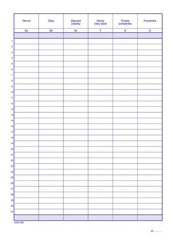 Zošit sa používa na evidenciu obratov pre neplatiteľov DPH. Obsahuje 48 listový blok formátu A4. Sfarbenie papiera biely, modré rlinky. Rozmery: 21 x 30 cm.