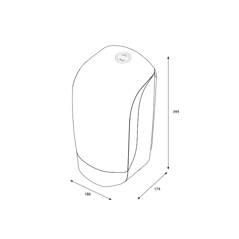 Plastový zásobník INTRO na papierové utierky v roliach so stredovým odvíjaním. Maximálny priemer kotúča 20cm, Vonkajšie rozmery 24 x 22,5 x 37cm.
