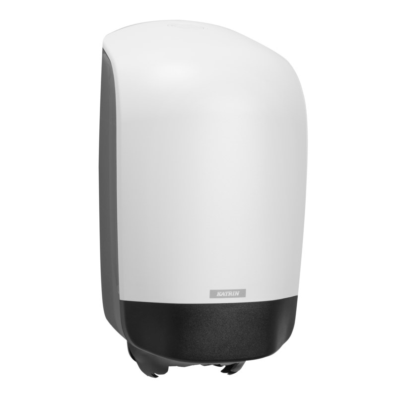 Plastový zásobník KATRIN na skladané ZZ utierky. Vyrobený z odolného ABS plastu. Kapacita 2,5 balíka. Univerzálny dávkovač papierových utierok funguje so všetkými typmi skladacích utierok C-Fold, Non Stop, One Stop a Zig Zag s maximálnou šírkou do 240 mm. Podporné rebrovanie udržuje balík utierok v dávkovači rovnomerne. Pre jednoduchšie naplňovanie kryt sa otvára smerom hore. Zámok je možné používať s kľúčom alebo bez kľúča.