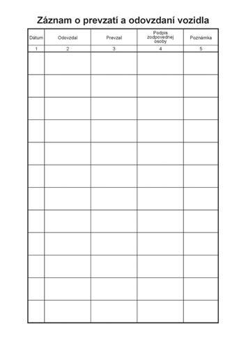 Tlačivo sa používa v doprave ako záznam o prevádzke motorového vozidla osobnej dopravy. Obsahuje 100 listový blok formátu A5, s perforáciou. Sfarbenie papiera biely, modré a čierne linky. Rozmery: 21 x 15 cm - samoprepis.