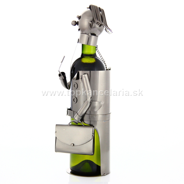Ručne vyrábaný kreatívny stojan pre klasickú vínovú fľašu 0,75 s motívom šéfová, manažérka IT programátorka, sekretárka, úradníčka, administratívna pracovníčka atď. Originálny darček pre oslávenca, ktorý určite prekvapí aj hostí. Každý kus je originál. Lakovaná povrchová úprava v platinovej farbe.