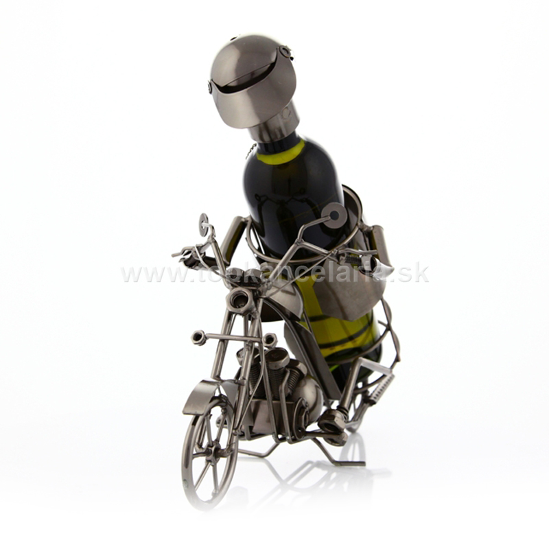 97058 Kovový stojan na víno, motív motorkár