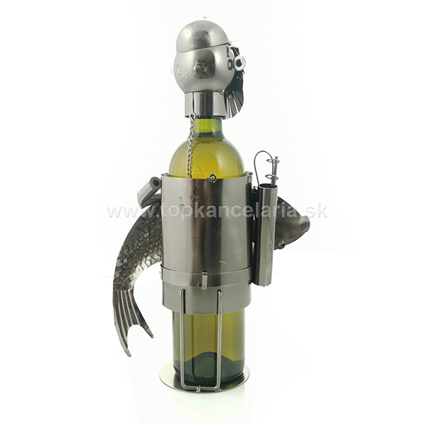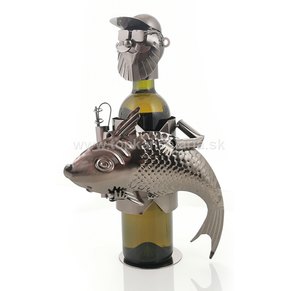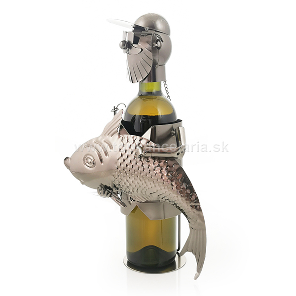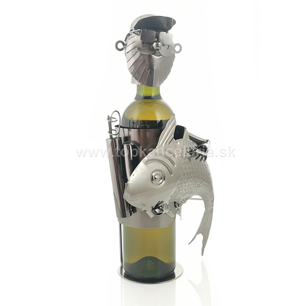Ručne vyrábaný kreatívny stojan pre klasickú vínovú fľašu 0,75 s motívom rybár. Originálny darček pre oslávenca, ktorý určite prekvapí aj hostí. Každý kus je originál. Lakovaná povrchová úprava v platinovej farbe.