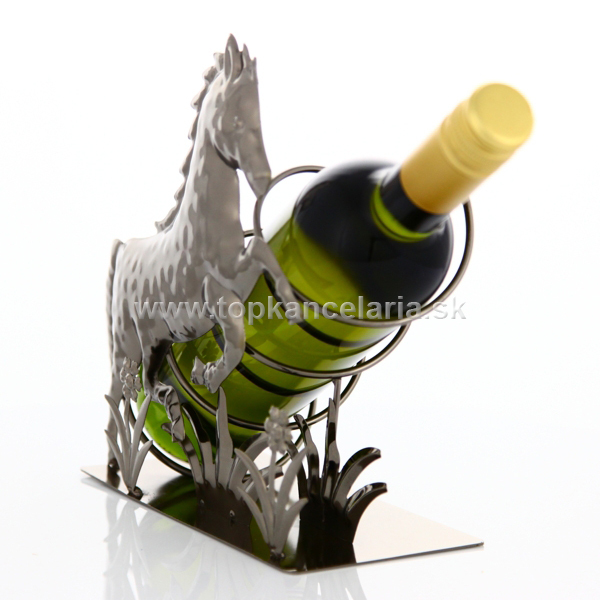 Ručne vyrábaný kreatívny stojan pre klasickú vínovú fľašu 0,75 s motívom kôň. Originálny darček pre oslávenca, ktorý určite prekvapí aj hostí. Každý kus je originál. Lakovaná povrchová úprava v platinovej farbe.