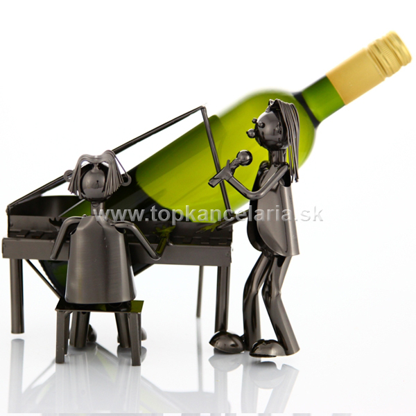98761 Kovový stojan na víno, motív klavírista a spevák