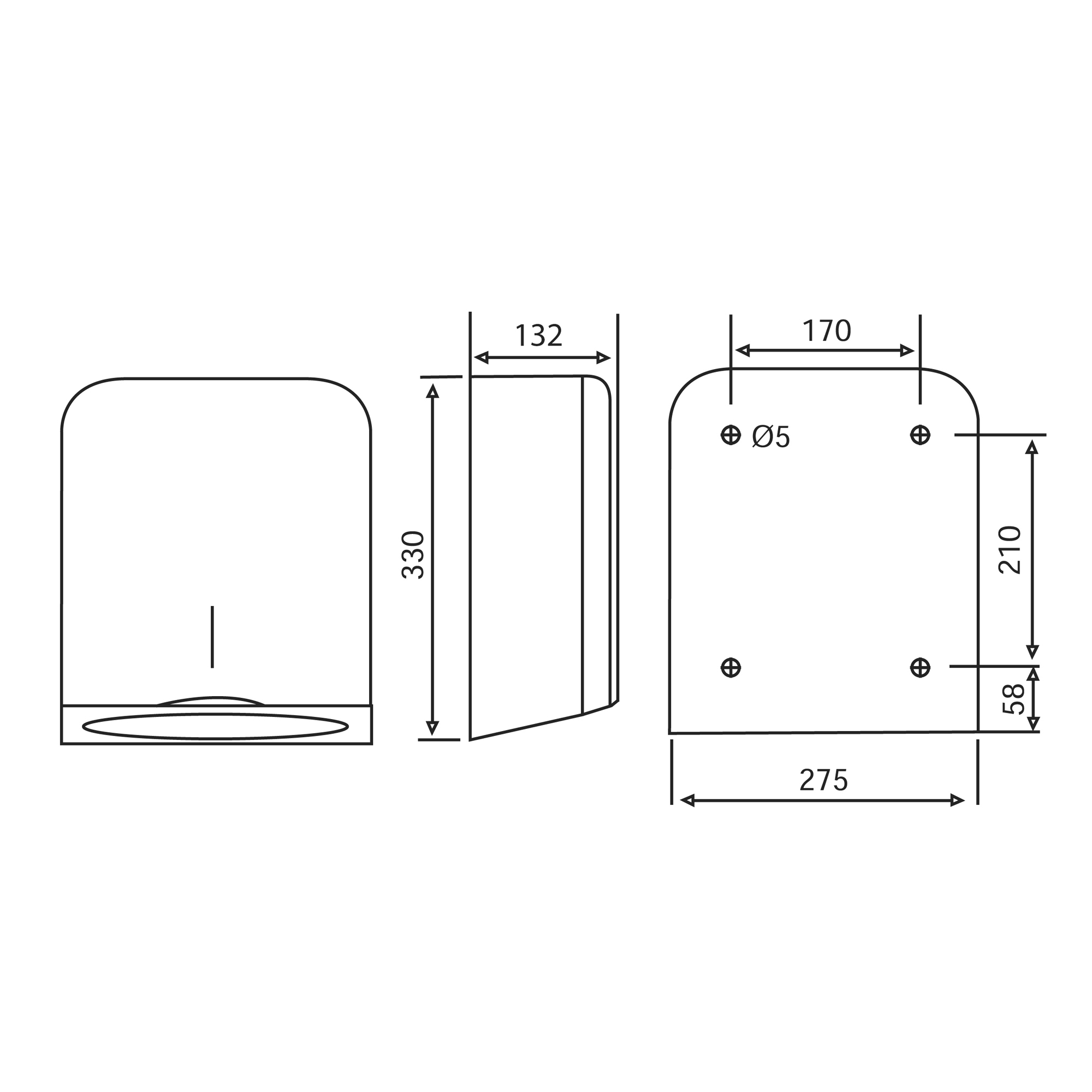 A figyelmeztető ablak értesít a papírtöltés szükségességéről. Zárható. Egyszerű töltés. Méret: 330 x 275 x 132 mm. A szerelési oldalon lévő nyílások mennyisége lehetővé teszi a falra történő egyszerű felszerelést. Felületkezelés: fehér porfesték.