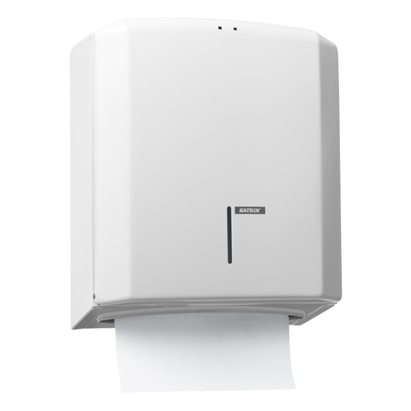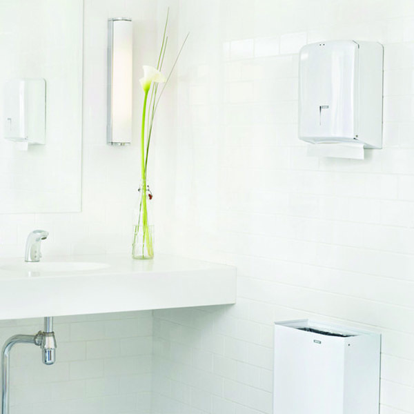 Kovový zásobník na skladané utierky. Kapacita 2 balíky skladaných utierok cca 500 ks. Kontrolné okienko vás upozorní na potrebu doplnenia papiera. Uzamykateľný. Má Jednoduché plnenie. Rozmer: 330 x 275 x 132 mm.Množstvo otvorov na montážnej strane umožňuje jednoduchú montáž na stenu. Povrchová úprava biela prášková farba.