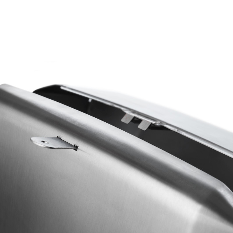 Elegantný zásobník na skladané utierky. Pevné a luxusné prevedenie z lešteného nerezu Stainless Steel. Kapacita 2 balíky skladaných utierok cca 500 ks. Kontrolné okienko vás upozorní na potrebu doplnenia papiera. Uzamykateľný. Má Jednoduché plnenie. Rozmer: 330 x 275 x 132 mm.Množstvo otvorov na montážnej strane umožňuje jednoduchú montáž na stenu.