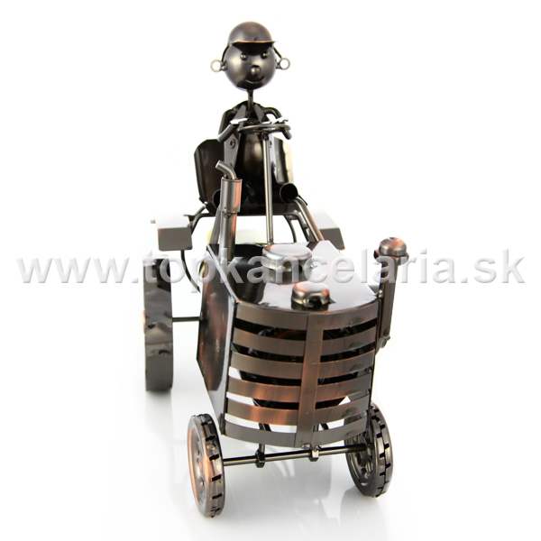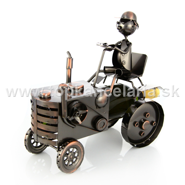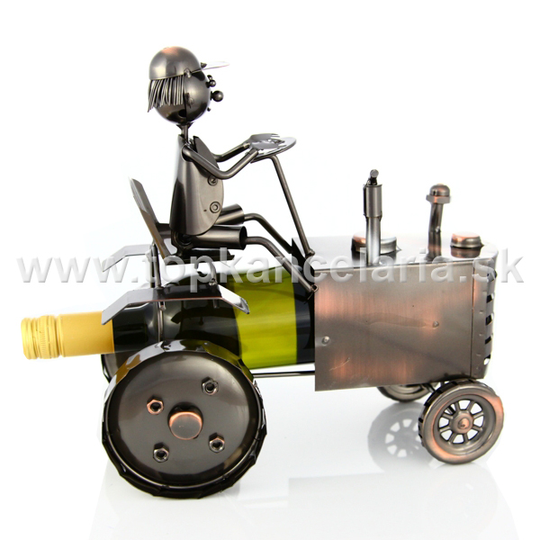 Ručne vyrábaný kreatívny stojan pre klasickú vínovú fľašu 0,75 s motívom traktorista, rolník. Originálny darček pre oslávenca, ktorý určite prekvapí aj hostí. Každý kus je originál. Lakovaná povrchová úprava v platinovej farbe.