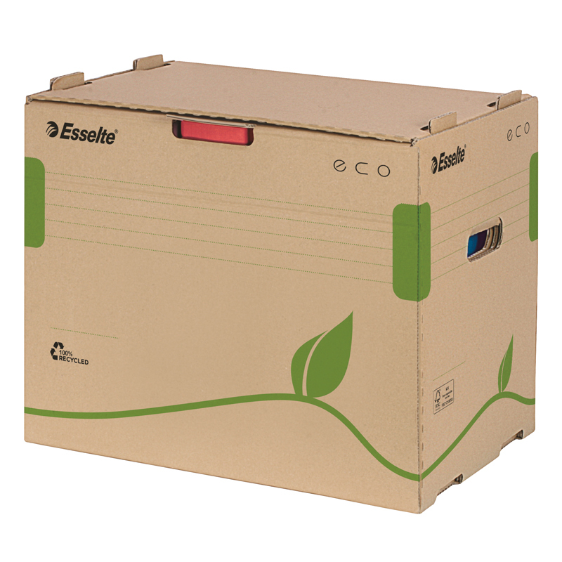Darček 3 ks Esselte Home..... Zloženie archivačných krabíc Esselte Speesdbox 100mm trvá pár sekúnd, jedným pohybom bez potreby manuálu. Určené pre dokumenty formátu A4, dosky na spisy A4 i papiere formátu Foolscap. Vhodné pre vertikálnu a horizontálnu archiváciu uložené v policiach. Dvojité bočnice chránia krabicu pred otvorením a spevňujú okolie chrbtového úchytu. Inovatívna konštrukcia rýchleho zloženia, ktorá šetrí čas. Vyrobené zo 100% recyklovanej vlnitej lepenky, 100% recyklovateľné, certifikované FSC®. Rozmery 100 x 250 x 350 (mm)