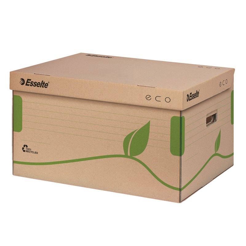 Perfektný kontajner s horným otváraním pre archivačné boxy ECO 80 a 100mm. Je vhodný aj ako univerzálny úložný a prepravný box. Výberom Eco kontajnera ťažíte z cenovo výhodného riešenia archivácie dokumentov a prispievate k ochrane našej planéty. Tento plne funkčný výrobok je vyrobený zo 100% recyklovanej vlnitej lepenky, vrátane 85% spotrebného materiálu. Je 100% recyklovateľný a certifikovaný FSC®. Kapacita pre Eco boxy 5x 80mm alebo 4 x 100mm. Jednoduchá montáž, ľahko zrozumiteľné pokyny vytlačené priamo na škatuli. Vystužené boky a základňa robia box robustným a vhodným na ťažké dokumenty. Rozmery 345 x 242 x 439 mm. Cena je uvedená za 1ks