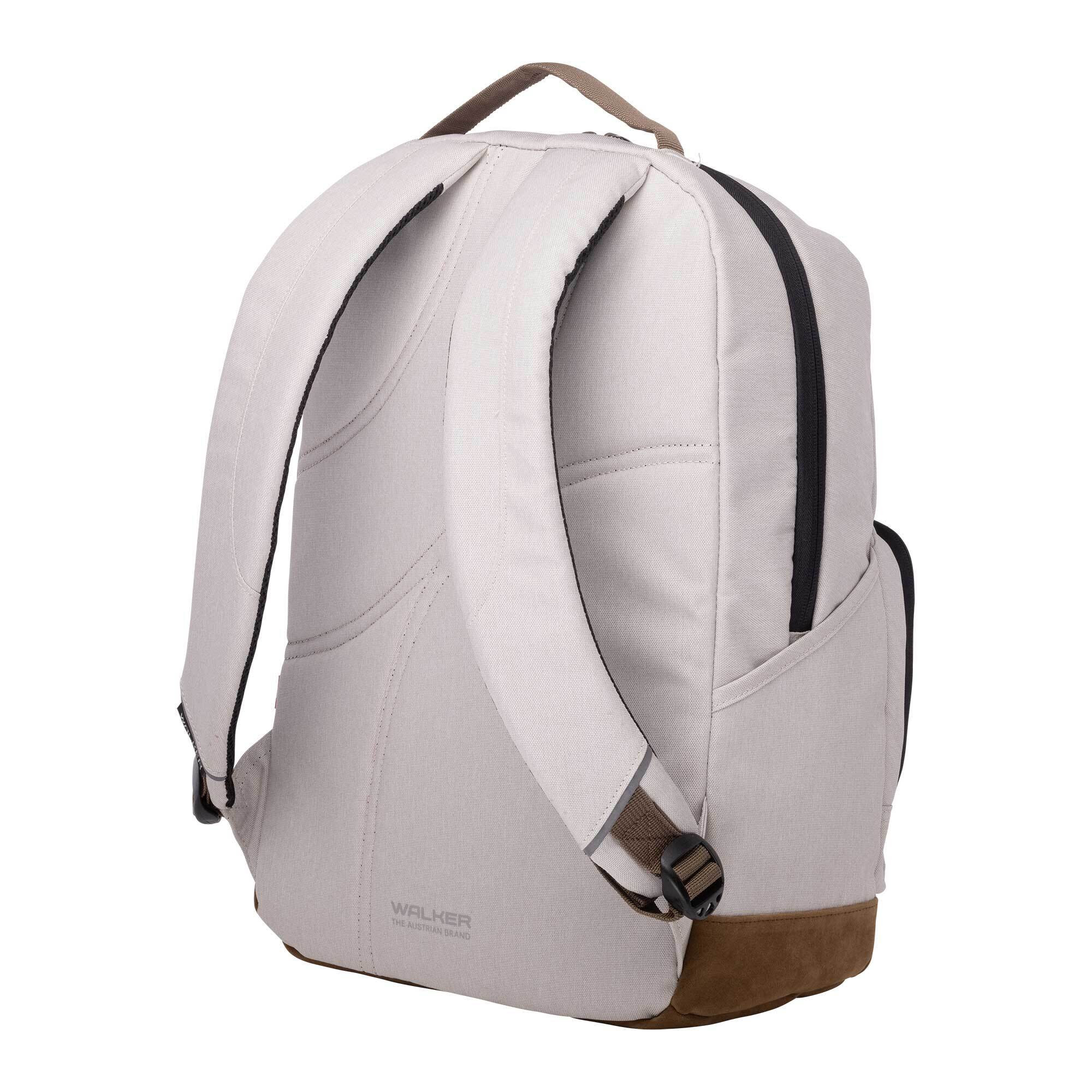 Voľnočasový batoh Walker Pure Eco s reflexnými prvkami ponúka moderný dizajn a vysokú funkčnosť. Jeho vystužený a prešívaný chrbát spolu s anatomicky tvarovanými a výškovo nastaviteľnými ramennými popruhmi zabezpečujú pohodlné nosenie aj pri dlhšom používaní. Hlavná komora obsahuje vystužené vrecko na notebook do veľkosti 15", samostatné vrecko na tablet a praktické sieťované vrecká na drobnosti.