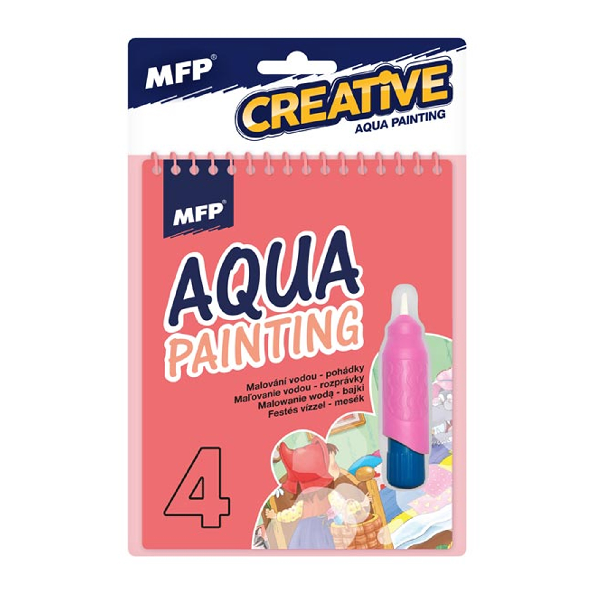 Užite si pohodové popoludnie s deťmi maľovaním vodou vo forme knihy. Stačí namočiť štetec do téglika s čistou vodou a maľovať po bielej ploche. Akoby kúzlom sa objaví pestrofarebný obrázok. Po zaschnutí farieb obraz opäť zmizne a môžete ho maľovať znova. **Varovanie:** Nevhodné pre deti do 3 rokov. Nebezpečenstvo udusenia kvôli malým častiam.