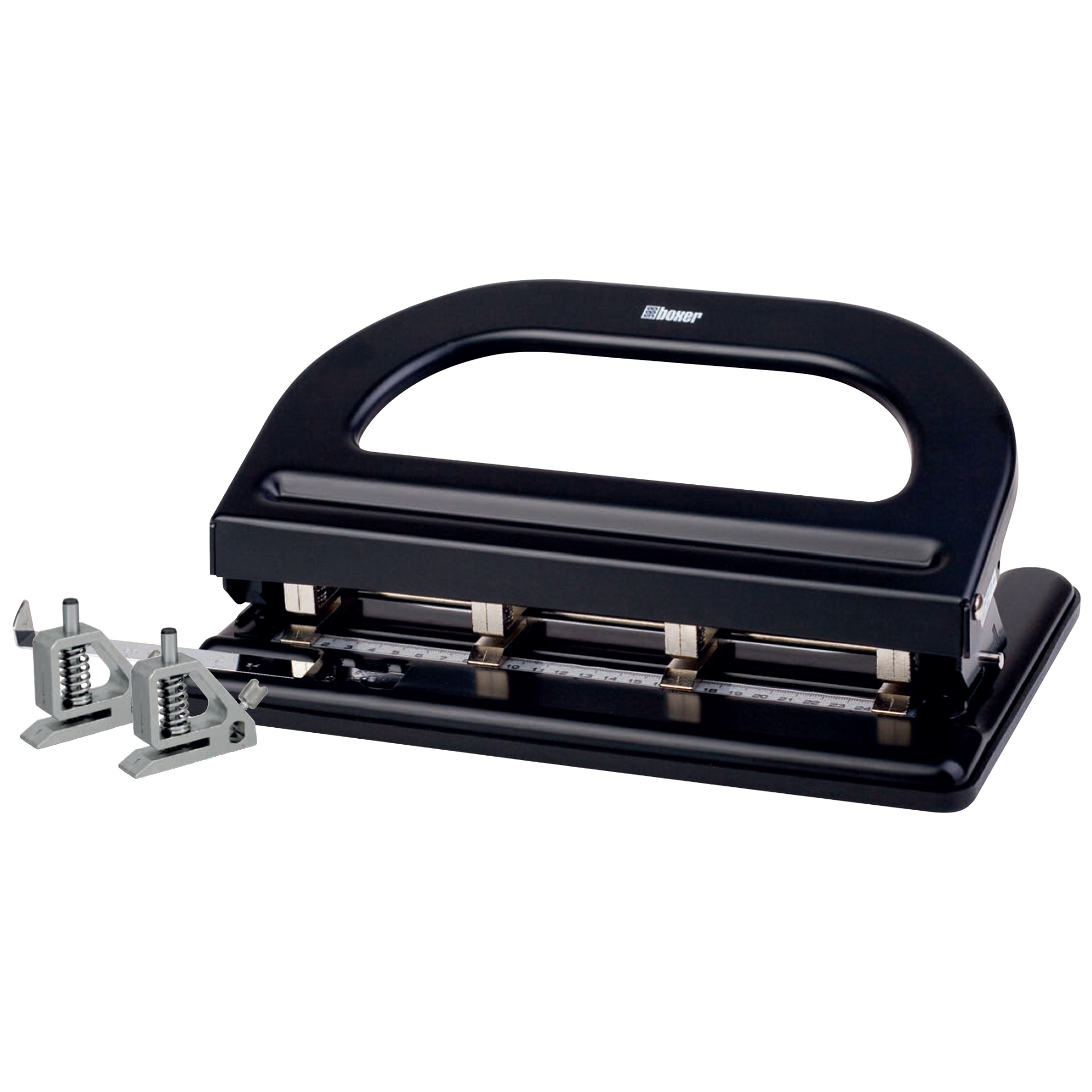 Robustná celokovová dierovačka zo s vymeniteľnými segmentmi pre dierovanie 2 až 6 otvorov. Nastavenia vzdialenosti medzi otvormi uľahčí zabudované pravítko a risky na segmentoch. Náhradné dierovacie segmenty je možné samostatne dokúpiť obj. kód 83000. Jednoducho sa dajú pridať, odobrať alebo vymeniť. Príložník pre štandardné formáty. Balenie obsahuje 4 dierovacie segmenty. priemer otvorov je 6mm. Kapacita dierovania je 30 listov 80 g papier.
