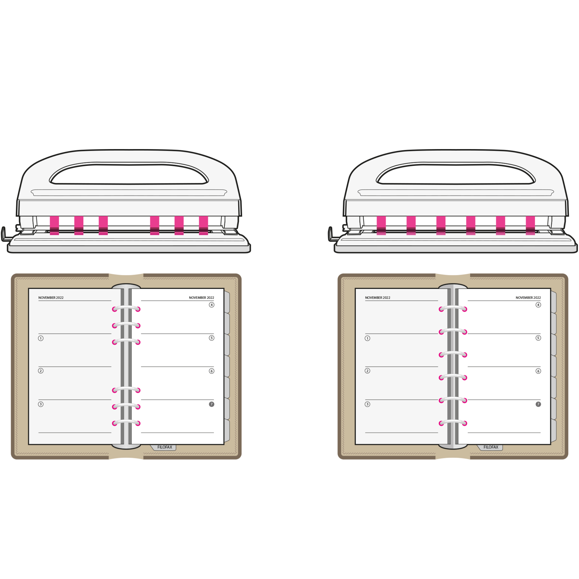 Robustná celokovová dierovačka zo s vymeniteľnými segmentmi pre dierovanie 2 až 6 otvorov. Nastavenia vzdialenosti…