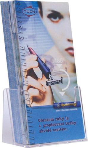 Jednoliaty stojanček vyrobený z číreho plastu pre buletiny a propagačné materiály pre formát 1/3 z A4.