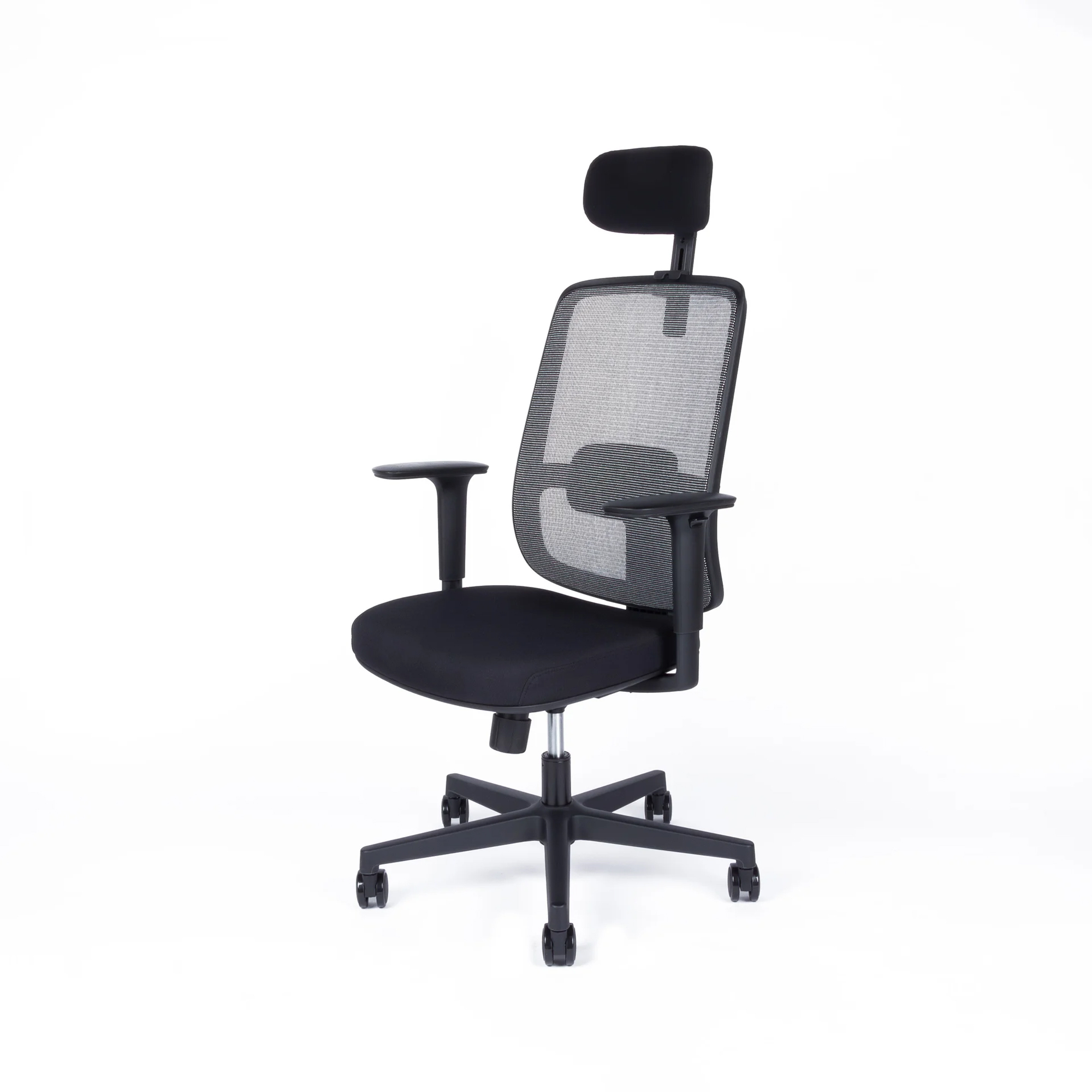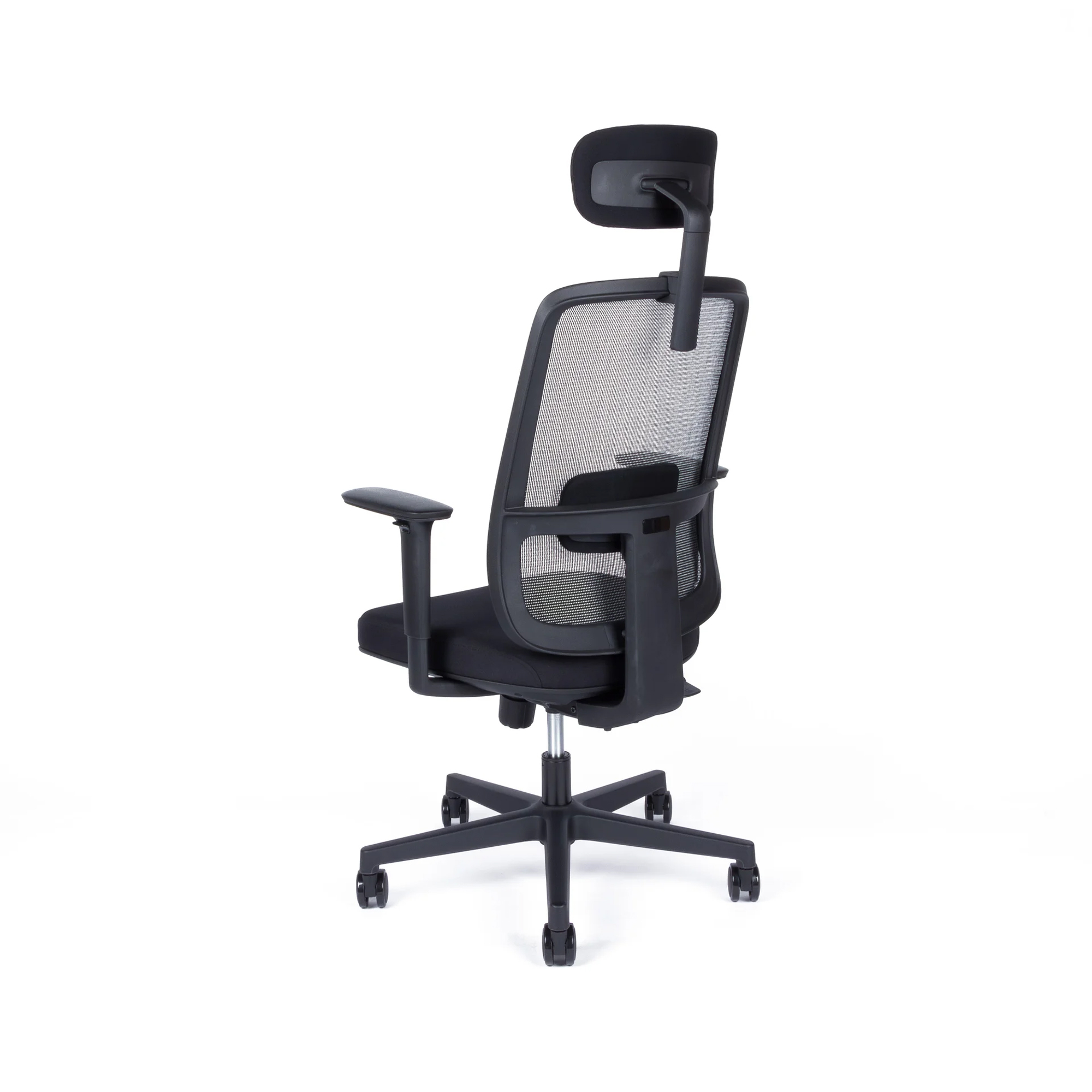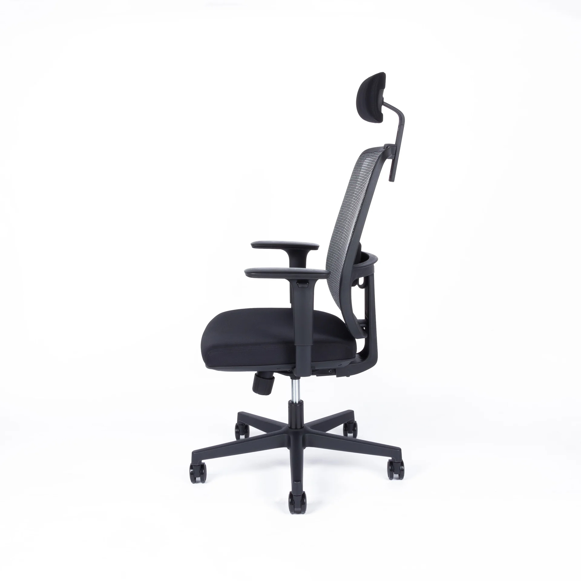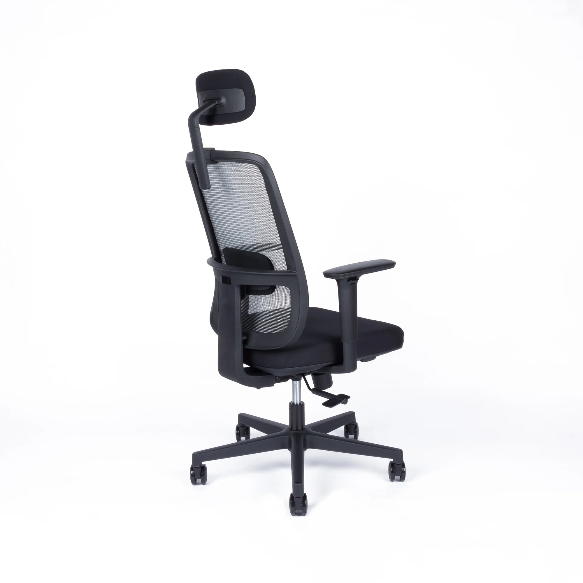 Kancelárska stolička s výškovo nastaviteľnou sieťovou opierkou a so synchro mechanikou s nosnosťou do 150kg. Má samostatne výškovo nastaviteľnú bedrovú opierku, podrúčky a nastaviteľný podhlavník 3D. Sedadlo je vyrobené z injektovanej peny. Šírka sedadla 51cm. Čierny kríž pre vyššiu záťaž pr.64cm. Pogumované kolieska pr.65 vhodné na všetky povrchy. Váha stoličky 18kg