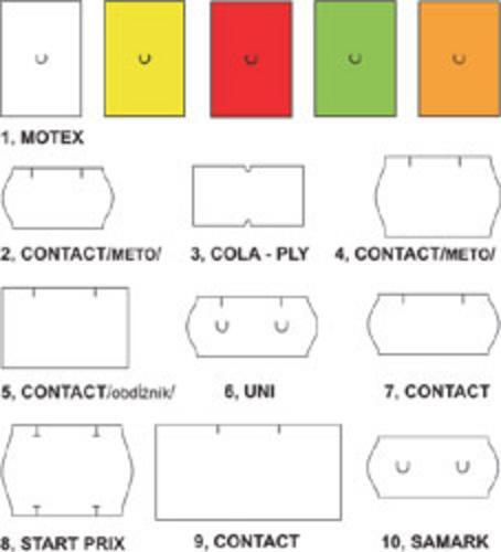 Biela cenovkové etikety. Zobrazené etikety zodpovedajú skutočnej veľkosti. Rozmery - 21 x 12 mm Počet etikiet - 1250 ks Balenie - 42 kot.