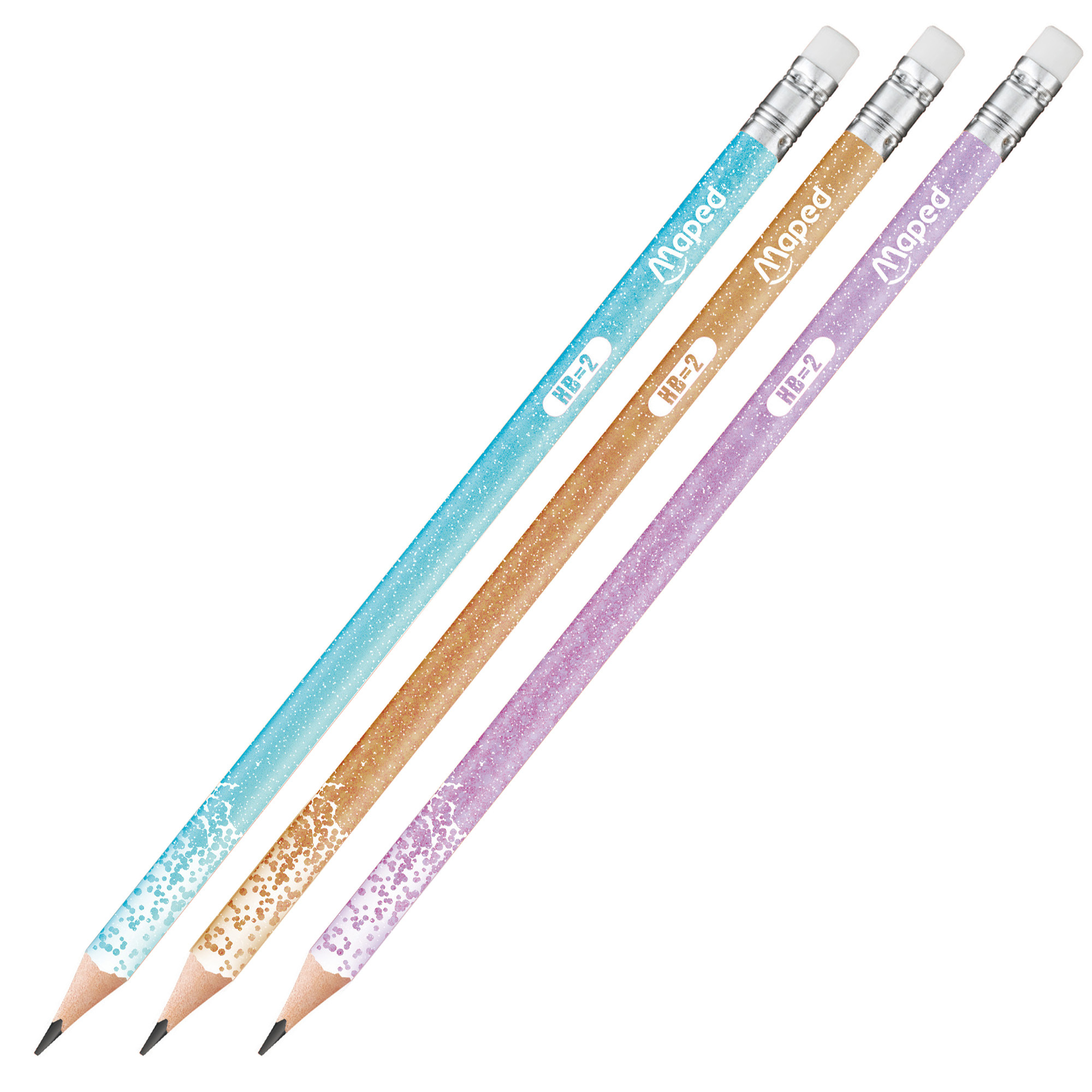 Bezdrevná grafitová ceruzka so žiarivým trblietavým telom a gumou. Trojhranný tvar pre lepšie a pohodlnejšie uchopenie.…