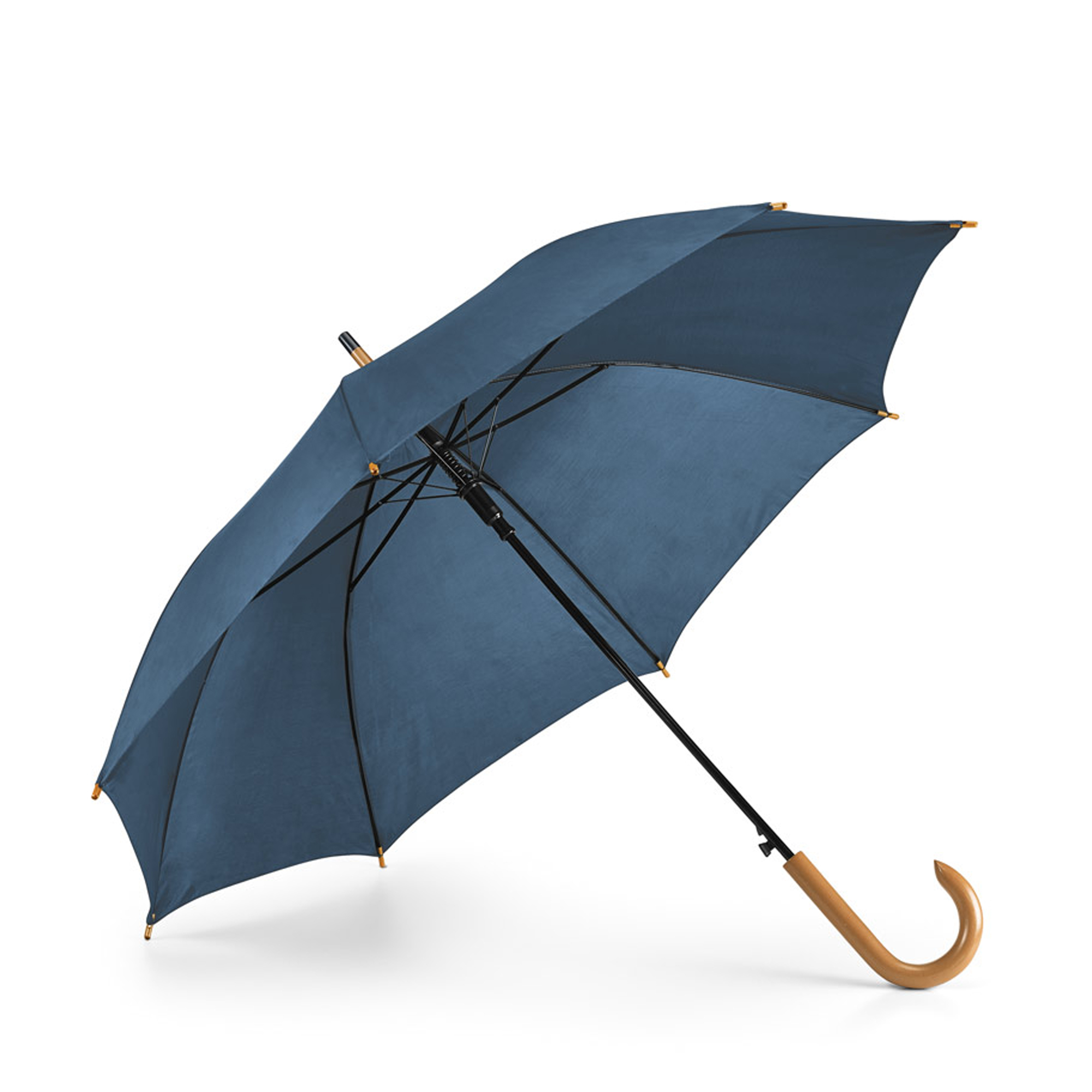 Veľký dáždnik s automatickým otváraním s drevenou rukoväťou, 8 panelov. Rozmery: priemer 96 x 83 cm.
